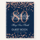 Una elegante plantilla de la 80ª Fiesta de Cumpleaños con el Rosa Purpurina de Oro Confetti en el diseño azul marino y texto fácil de personalizar.