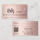 Fondo dorado Rosa, texto negro. Decorado con chispas falsas en la parte delantera. Al frente: Añadir descuento. fecha válida. Atrás: Personaliza y agrega tu nombre de negocio, número de teléfono, correo, dirección de sitio web, código qr a tu sitio web o cuenta de medios sociales.