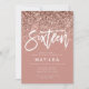 Rosa efecto oro gentil purpurina rosa brillante tipografía moderna dulce invitación de 16 cumpleaños. Mínimo moderno en diseño de tendencia con escritura elegante shchi. Parte de una colección de cumpleaños. Perfecto para tu adolescente glam.