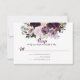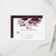 RSVP de boda con acuarela con peonías y rosas en malva, rosa y púrpura con vegetación a juego. La plantilla es fácil de personalizar - hay elementos de caligrafía manuscrita en púrpura oscuro y una mezcla de una fuente moderna. Invitación de boda a juego disponible.