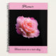 Un planificador con una foto de una rosa rosada contra un fondo negro