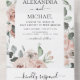 Dusty Rosas de flores rosadas y Eucalyptus Boda de color de agua de la vegetación botánica Primavera o Invitaciones de Boda de verano y RSVP - incluye una bella y elegante tipografía de escritura con flores botánicas tropicales modernas y vegetación para la celebración especial del Día de la Boda.