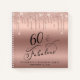 Elegante libro de invitados para su fiesta de cumpleaños número 60 con "60 & Fabulous" en un guión de moda y goteo de rosas de purpurinas de imitación de oro. Personaliza con su nombre y la fecha de fiesta.