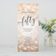 Elegante Glam Rosa Gold Purpurina Lights 50th Birthday Script plantilla con texto de programa fiesta, luces purpurinas y escritura moderna de tipografía.