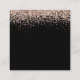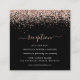 Rosa Purpurina Dorado Script Boda Detalles de recepción en negro. Un práctico tamaño pequeño para entrar con tus invitaciones para que los clientes conozcan los detalles de la recepción, este diseño tiene un guión elegante con cambios para el encabezado principal. Personaliza fácilmente todo el texto. Un borde de falso purpurina de oro rosa está en la parte superior de cada lado.