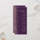 El borde izquierdo de este elegante y moderno programa de bodas cuenta con un diseño purpurina de imitación de oro rosa. El texto del personalizable combina la escritura a mano de color rosa pálido, el copperplate y las letras cursivas en un fondo morado oscuro.