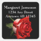 Rosa rojo de largo provenido que casa la etiqueta