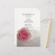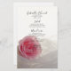 Personalizar el bonito Rosa Rosa en el menú Boda blanco con los detalles de la comida que se sirven en su elegante almuerzo fiesta con ducha de novia, brunch postboda o cena en la recepción matrimonial añadiendo la ensalada o el primer plato, entrante o segundo y postre o tercer plato. Personalízalo con los nombres de la novia y el novio, el lugar del evento y la fecha. Elegante menú personalizado y florido boda con una fotografía floral de una flor rosa rosa con un velo de novia blanco.