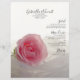 Personalice el menú bonito Rosa en Boda blanco con los detalles de la comida que se servirán en su elegante almuerzo fiesta con ducha de novia, brunch postboda o cena en recepción matrimonial. Este elegante menú nupcial botánico personalizado incluye una fotografía floral de una flor rosa rosa rosa con un velo nupcial blanco.
