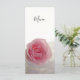 El elegante menú Boda Rosa en blanco se puede personalizar con los detalles de la comida que se sirven en el brunch fiesta de su bonito, el almuerzo con ducha de novia o la cena de la recepción matrimonial. Este elegante menú personalizado de boda floral cuenta con una fotografía botánica de una flor rosa rosa con un velo de novia blanco.