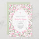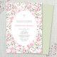 La invitación al bautismo chica floral rosa en estilo Grandmillennial presenta hermosos rosas de acuarela rosa y verde con una forma ovalada para tu texto. Esta invitación da lugar a la ubicación y el tiempo del bautismo, además de espacio para una celebración después de la ceremonia y la información de RSVP.