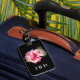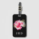 Rosa rosa monogramada en etiqueta de equipaje negr