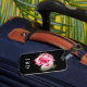 El diseño presenta la imagen realista de una elegante rosa rosa rosa con flor total que se muestra contra un fondo negro. Las iniciales suministradas se muestran en la parte inferior de un tipo de letra impreso en blanco. Este diseño es claro y fácil de leer, y le ayudará a identificar su equipaje.