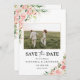 Rosa Rosa Rosada De Rubor Guarda La Fecha Con Tarjeta Plana De Fotografía. Esta elegante y elegante invitación a guardar la fecha cuenta con una preciosa acuarela pintada a mano Rubor Pink Rose. Buscar elementos coincidentes en la colección Watercolor Rubor Pink Rose Gold.
