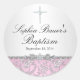 Pegatina del bautismo. Elegante rosa rosada y cruz de diamantes. Zazzle exclusivo. Personalizar con sus propios detalles. POR FAVOR, NOTE todas las imágenes planas! ¡¡No tienen encaje, diamantes ni joyas de verdad!!