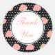 Las rosas rosas bonitos decoran estos puntos de polka en blanco y negro gracias pegatinas. Usa a estos pegatinas elegantes para un boda, ducha de novia, favores de fiesta, favores de boda, negocios, etc... El diseño es de arte original.