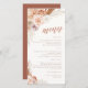 Elegante menú boda con temática de terracota bohemia de otoño con letras caligráficas acentuadas por rosas de acuarela de color pastel, pampas y hojas de palma.
