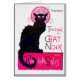 Tarjeta de felicitación francesa del poster del gato del vintage rosado y negro.
