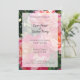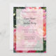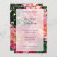Elegantes rosas de rayas rosas y blancas florecen en esta bonita fotografía de arte floral, con tu fiesta en letras de guión, y el tiempo y la dirección de los lugares en letras de bloques vintage sobre un fondo translúcido.