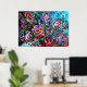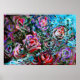 Muchos rosas semi-abstractos en rosa, rojo, turquesa, oliva y azul (la impresión es de mi arte de medios mixtos). Por mí, Alexandra Cook alias Linandara.
