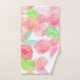 Un amplio diseño floral con rosas sueltos en varios tonos rosados, junto con hojas verdes y verdes-azules. Personalizar a su gusto.