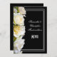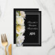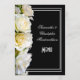 Una sencilla flor de rosa blanca en un fondo negro floral y un menú boda bordeado de blanco para bodas tradicionales blancas o de verano en el jardín que complementarán sus otras necesidades de novias, fácilmente personalizadas con los nombres de novias y novios y menú a la carta para crear su propio menú personalizado femenino y lujoso sofisticado y profesional para sus ocasiones, eventos y celebraciones especiales. Visite la TIENDA PERSONALIZED_ BODAS para obtener conjuntos de suites boda coordinados. PERSONALIZAR para ajustar el tamaño y la posición del tipo de letra.