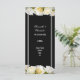 Ramo de novias florales y flores de rosa blanca sobre el diseño del programa de bodas de la iglesia de fondo negro con un borde blanco. Un diseño femenino de bonito perfecto para matrimonios contemporáneos tradicionales o modernos. Puede ser fácilmente personalizado con los nombres de novias y novios y otros invitados de novias que escriben en las plantillas para crear su propia moda lujoso programa de matrimonio profesional para sus eventos especiales y celebraciones. Visite la TIENDA PERSONALIZED_ BODAS para obtener conjuntos de suites boda coordinados.