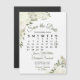 Estas hermosas bodas magnéticas, salvo las tarjetas de fecha, presentan un diseño floral rústico y elegante pintado a mano con rosas acuarelas, flores y flores en tonos marfil, blanco y crema, rodeadas por un abanico de hojas de eucalipto, vegetación y follaje. Hay un calendario de personalizables que muestra el mes de su boda con un corazón alrededor de su día especial. Esta elegante tarjeta de moda boho es una excelente manera de asegurarse que sus amigos y familiares estén al tanto de su próximo boda.