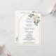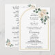 Guíe a sus invitados a través de los momentos significativos de su ceremonia con este hermoso programa de boda inspirado en un tema de jardín de rosas blancas al estilo acuarela. El diseño presenta delicadas flores de rosas blancas combinadas con suaves verdes dispuestos a lo largo de un elegante marco de arco floral dorado minimalista, creando un refinado acento botánico que se siente romántico y atemporal. La elegante obra de arte floral refleja una estética de boda romántica y botánica suave y atemporal, aportando un toque elegante y sofisticado a la papelería de su ceremonia.