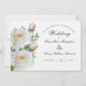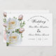 Invitación sencilla y tradicional a la boda de la Rosa Blanca. Pareja boda en la parte delantera, Boda y detalles de recepción en la parte trasera.