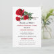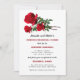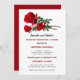 Ensayo de ceremonia de boda, cena de ensayo, invitación con diseño de rosas rojas... Envíe esta invitación para que la fiesta de bodas sepa la hora y la ubicación del ensayo para el boda. Incluya información sobre la cena posterior. El texto rojo y negro alternativo en fuentes impresas y de escritura crea una invitación elegante e informativa. Los tallos de rosa realistas decoran la parte superior del papel. Revertir es rojo sólido.