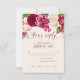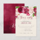 Una florida y brillante multitud de rosas en tonos burdeos y crema es el punto fuerte de muchas de las piezas de esta suite boda que también cuenta con un elegante guión de texto y un diseño moderno. La tarjeta RSVP de boda que se muestra aquí tiene un borde superior de rosas y un hermoso resumen de acuarela al revés en rico borgoña y ciruela. Introduzca fácilmente los requisitos de fecha y menú del boda utilizando la plantilla proporcionada. Busque ID584 para ver todas las piezas coincidentes en este hermoso conjunto de bodas.