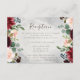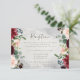 Complementa su magnífico evento boda con esta clásica tarjeta de recepción de rosas con flores de peony. El diseño está decorado con bonitas flores pintadas a mano, rosas, azules, navales y borgoñas con hojas verdes, cuidadosamente agrupadas en elegantes ramos para embellecer tus tarjetas de invitación al evento.
