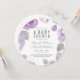 Personalizar esta elegante moda y la romántica Invitación Baby Shower, con una pintura acuarela original de rosas de lila morada de lavanda femenina. Invitación de círculo único, también puede cambiarla a cuadrado o cuadrado con esquinas redondeadas.