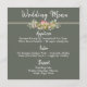 Menú boda Tarjeta de Rosas acuáticos diseñada con floral verde y rosa suave, para su recepción nupcial. El texto incluye: Boda Menu, The Bride and Groom's First Names y Boda Date on a white Background with floral border. El texto inverso incluye: Su Menú Selecciones - Apeticionador, Entre y postre, sobre un fondo verde jardín, acentuado con suave rosa y floral verde. Para personalizar, simplemente inserte los detalles del menú Boda en nuestra plantilla sencilla, reemplazando el texto de ejemplo.