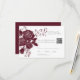 Una versátil tarjeta RSVP, los huéspedes pueden escanear el código QR, o rellenar y enviarle un correo. Dos lados y con rosas en un diseño Rosa de color Borgoña. Parte de la colección de Bodas de rosas blancas. Disponible en 7 colores.