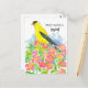 Una conmovedora postal de invitación decorada con un pájaro dorado amarillo brillante y flores silvestres rosas de pradera rosa ilustradas con tinta y pintadas con acuarela. Inspirado por el ave estatal y flor estatal de Iowa. ¡Vamos Hawkeyes! Puede editar el texto con sus detalles.