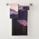 Añada los recordatorios espléndido magníficos de la belleza de la naturaleza a su hogar con montañas hued púrpuras de este monograma adaptable y un sistema ardiente de la toalla de baño del cielo del rosa y de la lavanda.
