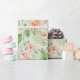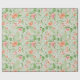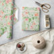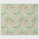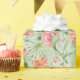 Rosas de melocotón e hibiscos sobre un fondo verde es el envoltorio de regalo de boda perfecto que tu novia amará