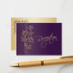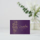 Rosas dorados estilizados con un fondo morado. En la parte trasera de la invitación - elegantes remolinos morados sobre un fondo dorado. Puede ajustar el texto de acuerdo con sus requisitos: cambiar el tipo de letra, el color, el tamaño y añadir información personal.