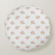 Una almohada redonda de moda o un colchón, con un patrón floral muy bonito de Rosas de perro rosado sobre un fondo blanco ligeramente texturado. Este patrón, que forma parte de la colección "Rosy Posy" de Posada y Pintada, se puede ajustar fácilmente para que se ajuste a cualquier almohada o cojín.