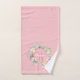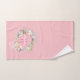 Toallas de baño en monograma rosa bonito, con un hermoso nombre de escritura blanca con una inicial color rosa que se complementa con una delicada garland de rosa floral de color agua sobre un fondo rosado de melocotón. Personaliza para crear un regalo especial de mantenimiento para el tesoro! Diseñado por Thisisnotme©