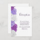 Elegantes, glamorosas y sofisticadas invitaciones contemporáneas para la recepción de boda personalizadas para su día especial. Invitaciones de recepción de boda románticas y con clase. Con hermosas imágenes impresas de rosas antiguas de color lila, blanco y púrpura en el lado izquierdo de esta tarjeta, y los detalles de su evento en el lado derecho, todo impreso en un fondo blanco. Este es un diseño moderno, con clase, elegante y de moda adecuado para bodas de cualquier estación, primavera, verano, otoño o invierno. Todo el texto, tamaño de fuente y colores de fuente son totalmente personalizables para satisfacer sus necesidades. Tenga en cuenta: todos los productos en Zazzle tienen imágenes impresas planas. Si necesita ayuda para personalizar su producto o le gustaría productos coincidentes, por favor contácteme a través de mi tienda y estaré encantado de ayudar.