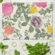 Rosas en Bloom en un patrón de repetición sin fisuras. Rosas moradas, rosas y amarillas en flor y en brote. Rodeado de viñas, hojas y delicadas flores más pequeñas. Perfecto para tu toalla de té, toalla de cocina y regalos. Perfecto para invitaciones, papel de envoltura, tazas, camisetas, almohadas, mantas