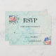 Una encantadora carta rústica de boda RSVP, con un tema floral y de moda baja. El diseño incluye un tapiz de damasco verde descolorido con ramos de rosas y hortensias florales en la esquina opuesta. En el reverso de la plantilla se muestra la posibilidad de una dirección de sitio web boda (si es necesario, simplemente elimine).