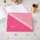 Rosas geométricos Red Boda Guest Book presenta un patrón geométrico de rosas de color rosa, coral y rojo con color rojo complementario que se mezcla armoniosamente como uno. La tipografía inclinada crea un estilo único con la franja rosa de coral que resaltar.