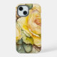 Un hermoso patrón de grandes rosas amarillas con guarnecido verde.