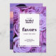 Moderna tarjeta de mesa Minimalista de Rosas púrpura foto ducha de novias favorece la mesa.................................................................................................................................................................................. Esta tarjeta personalizable 5x7 presenta un hermoso fondo acuático de románticos rosas morados, perfectamente enmarcado por un diseño blanco limpio. El frente está diseñado con un elegante "Favor" en negrita, junto con una instrucción educada de "¡Por favor, tómate uno!" y un sincero mensaje de "Gracias". Se personaliza con el nombre de la futura novia y las palabras "Ducha de novia". Esta bonita tarjeta es la forma perfecta de dirigir a los clientes a la mesa. ¿Pero la mejor parte? ¡La espalda! Es un lienzo precioso para una foto memorable de la futura novia, con una tipografía elegante de su nombre futuro. Esto garantiza una pantalla impecable desde cualquier ángulo cuando se coloca en soportes de tarjetas, soportes de madera o soportes de clips (no incluidos). Este keepsake es una incorporación impresionante y funcional a su evento. Simplemente personalizarlo con su nombre y detalles para crear un hermoso y moderno signo.