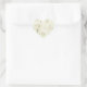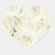 Pegatina de forma cardíaca mostrado con una foto impresa de rosas blancas bonitos con un brillo suave. Personalizar este artículo o compra tal cual.