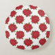 Una romántica almohada redonda o un colchón al personalizar, con una tónica de rosas rojas en todo el mundo, sobre un fondo blanco que se puede cambiar fácilmente si se desea. Parte de la colección "Corazones y Rosas" de Posh & Painterly de Judy Adamson, este patrón puede ajustarse para adaptarse a cualquier almohada/cojín.